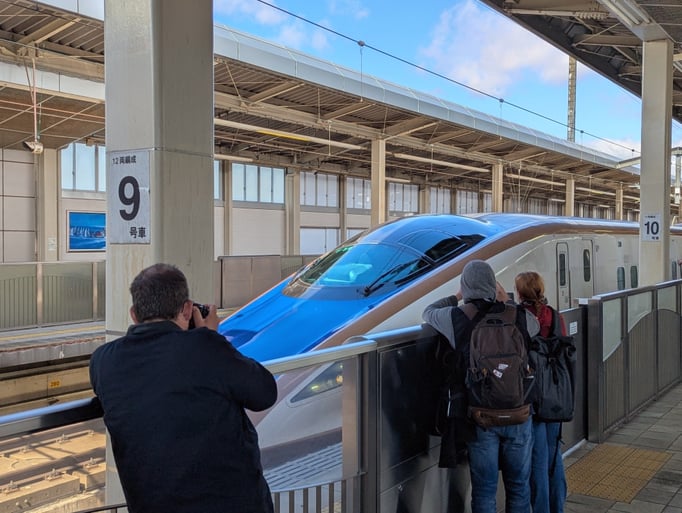 Mit vom Futon gestauchten aber durch Onsen durchwärmten Knochen geht es zurück nach Tokyo. Der Hotelbus liefert uns pünktlich am Bahnhof in Ueda ab und es werden noch ein paar Souvenirs im Bahnhof erstanden sowie Aufnahmen von durchrasenden Shinkansen gemacht.