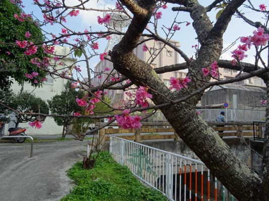 Von dort aus ging es zum Kinjo Damm, an einer Bäckerei vorbei. Dort gab es frische Ware, u.a. ein rundes Teil mit Ei und Schinken.