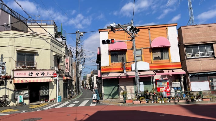 Ich halte mich heute im Yanaka Viertel auf. Hier gibt es viele Tempel und eine ursprüngliche Bebauung. Die Hochhäuser Tokyos sind in der Ferne auszumachen.