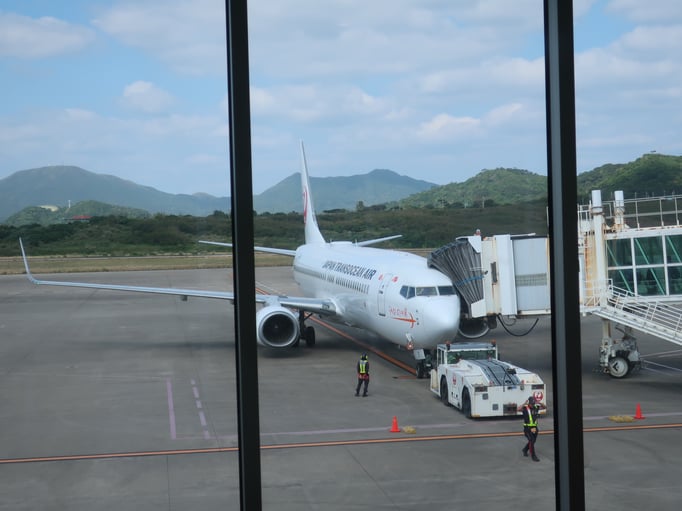 Am Flughafen angekommen, erwartete uns der typisch unkomplizierte japanische Inlands-Check-in. Alles lief reibungslos, und nach gerade mal 15 Minuten waren wir durch. Um 11:45 Uhr hoben wir dann ab, mit einem letzten Blick auf Ishigakis traumhafte Korallenriffe und das türkis schimmernde Meer. Keine 50 Minuten später landeten wir schon in Naha – schneller als so mancher Bahntransfer in Deutschland.