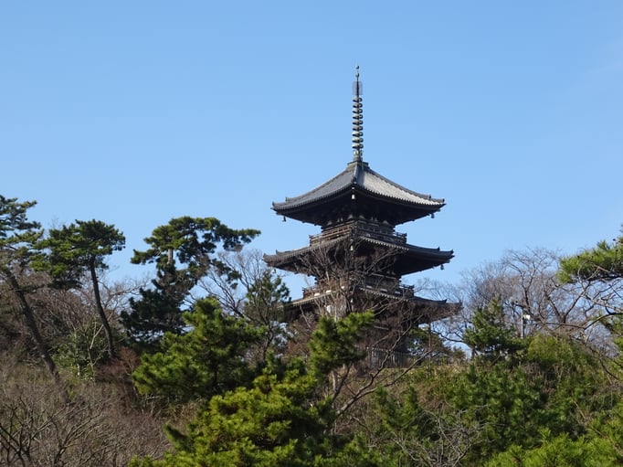 Ich sehe viele Japaner mit Klappstuhl in der Hand. Später bemerke ich auch wofür, hier sind Zeichner am Werk. Einige Zeichnungen konnte ich anschauen und hätte diese Werke sofort gekauft. Im gemächlichen Schritt geht es durch die Anlage. Da ich früh losgefahren bin, ist es noch ziemlich leer, und die Ruhe und Schönheit der Umgebung wirken wie Balsam auf die Seele. Der Weg zur Pagode hoch ist etwas Treppenlastig, dafür ist man aber dann auch nah dran. Geht man noch weiter, kommt man zur Aussichtsplattform. Hier gibt es einen tollen Blick auf Stadt und Hafen.