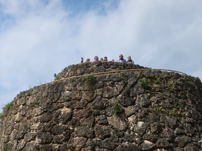 So trafen wir uns also um 8:00 am Hotel und verteilten uns in zwei Siebenergruppen auf die Buse und machten uns auf den Weg. Die ersten Ziele beschäftigten sich, mit Japan jüngerer Geschichte und deren Auswirkungen bis heute. So wurden der Kakazu Takadai Park inklusive Aussichtsturm, auf dessen oberste Etage gerade eine Serie gedreht wurde und eine Aussichtsplattform an der Kadena Air Base der USA besucht von der man die startenden und landenden Flugzeuge der Basis beobachten konnte.