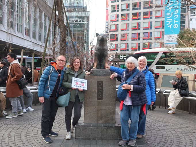 Ein Foto mit dem treuen Hund Hachiko, (einer Bronzestatue) welcher über viele Jahre am Bahnhof auf sein Herrchen gewartet hatte. Danach ging es über die große berühmte Kreuzung. Es waren viele,