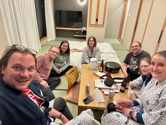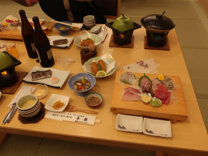 Um 17.15 Uhr bin ich im Zimmer. Kurz Füße hoch legen, gleich geht’s zum Abendessen. Koyama San lädt ein.