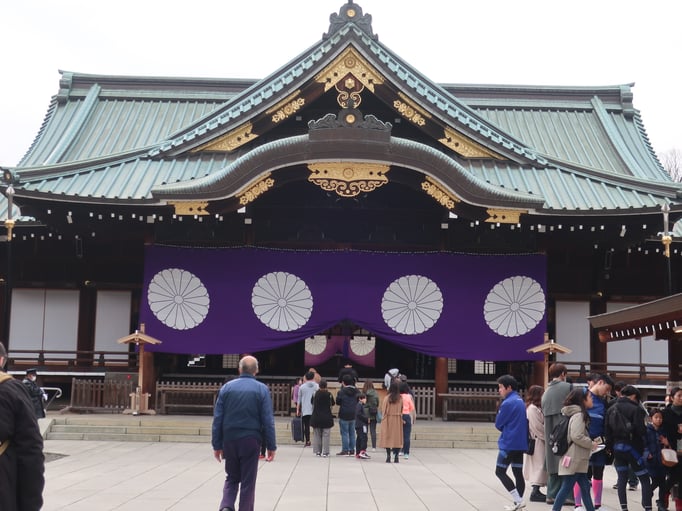 Wir besuchten den Yasukuni Schrein, dieser wurde zum Gedenken an gefallene Soldaten errichtet. An den Bäumen hängen Gedenktafeln für die verschiedenen Regimente der gefallenen Soldaten. Danach