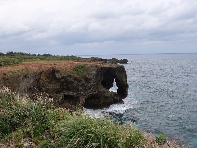 Danach ging es raus aus dem Großraum Naha und nach einem Stopp um sich mit Bentos für das Mittagessen zu versorgen, war unser nächste Ziel der Manzamo. Ein berühmter Felsformation an der Steilküste Okinawas, die nicht etwa an eine Ente oder einen Hasen erinnerte, sondern viel mehr an einen Elefanten. Der Besuch des dazugehörigen Besucherzentrum und Außenanlagen mit Wegen entlang der Steilküste, war trotz kräftigem Wind, oder vielleicht gerade deshalb, eine sehr stimmungsvolle Erfahrung, bei der man sich gut durchpusten lassen konnte.
