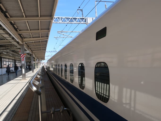 16.13 Uhr auf dem Bahnsteig des Shinkansen ohne Reservierung. Die Züge mit den Nichtreservierten Plätzen sind angezeigt bevor man den Bahnsteig betritt.