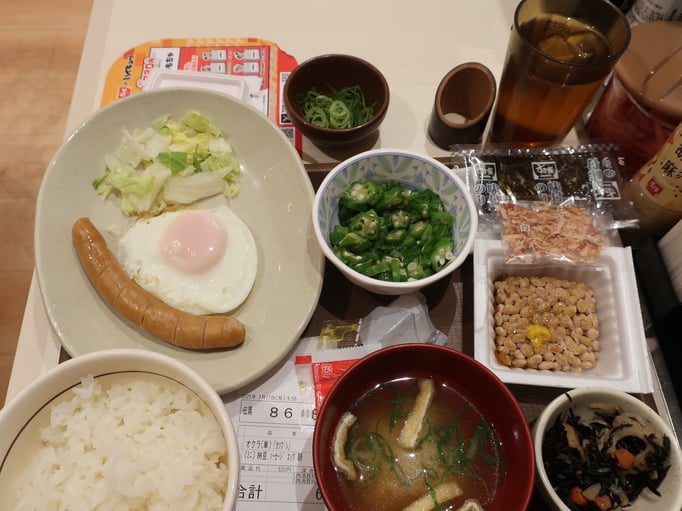Die Zeit fürs Frühstück war etwas knapp bemessen, vor allem wenn man versucht, Spaghetti und Reis einzeln mit Stäbchen zu essen.