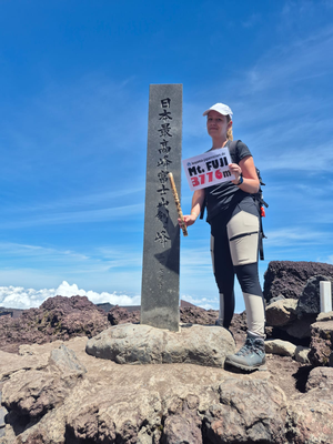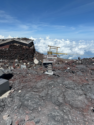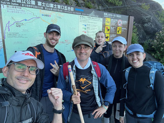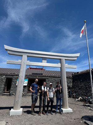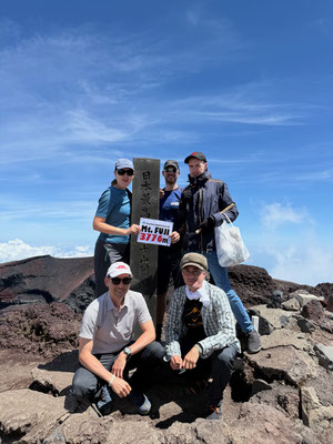 Als erstes um 4:15 aufstehen um mit dem Taxi um 5 Uhr nach oben zu fahren. Nach dem wir ein Gruppenfoto gemacht haben ging es um 6:30 nach oben. Wir haben uns nach Geschwindigkeit aufgeteilt. Auf dem Weg haben wir sogar ein paar Freunde gemacht 😃. Wir sind entspannt und nicht zügig nach oben gegangen und waren nach 4:30 h oben auf dem Ring, also um 11 Uhr. Dort haben wir beim Schrein ein bisschen Pause gemacht bevor wir dann zum Fuji Gipfel 🏔️nach oben gelaufen sind. Dort haben wir dann nochmal Pause gemacht und ein Gruppenfoto gemacht mit denen die es geschafft haben. Dort wollte sogar ein Inder mit unserem Schild ein Foto machen was ich lustig fand. Ich hatte dort oben leider fast einen Kreislaufzusammenbruch, weil ich zu wenig zum Trinken dabei hatte, aber die andern waren so freundlich und haben mir was zum trinken und einen Power-Up gegeben , sodass ich an dem Ring bis zur nächsten Station durchhalten konnte, um mir dort was zum trinken zu kaufen. Dort habe ich auch den letzten Stempel für den Stock gemacht, sodass ich bis zur Busstation jetzt alle Stempel von Fuji habe. Zurück zur Wanderung: Bis 14 Uhr (weil ich mir Zeit gelassen habe) hab ich den Ring geschafft, dann bin ich alle in 2h nach unten gelaufen. Beim nach unten laufen hab ich mich leider zu beeilt und mich dadurch zu überanstrengend. Dabei hab ich leider Mario die falsche Information weitergegeben, dass ein Bus um 16 Uhr abfährt, aber der nächste kämme erst um 17:30. Er hat sich extra deswegen beeilt, ENTSCHULDIGUNG 🥺.