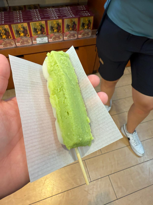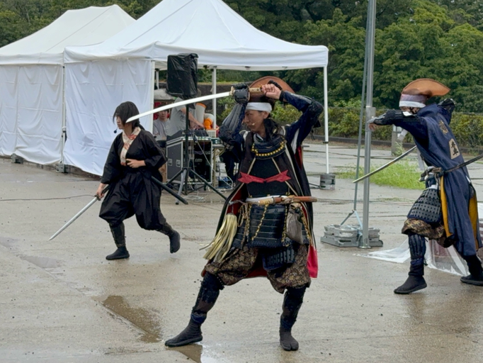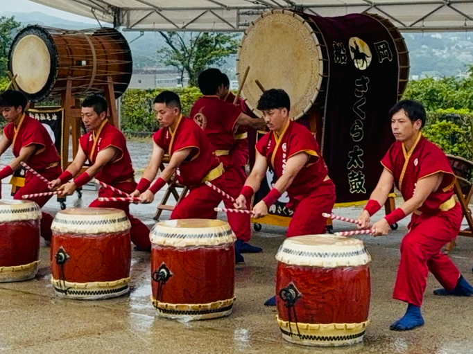 Nach einem kurzen Besuch des nahegelegenen Miyagiken Gokoku-Schreins und einem Stopp im Souvenirshop (inklusive einer Kostprobe der regionalen Spezialität Sendai Mochi) hatten wir das Glück, einen Samurai-Auftritt mit traditionellen Trommeln zu erleben. Besonders amüsant war dabei das Lied, in dem – zu meiner Überraschung, aber tatsächlich – die Sendai Mochi gefeiert wurden!