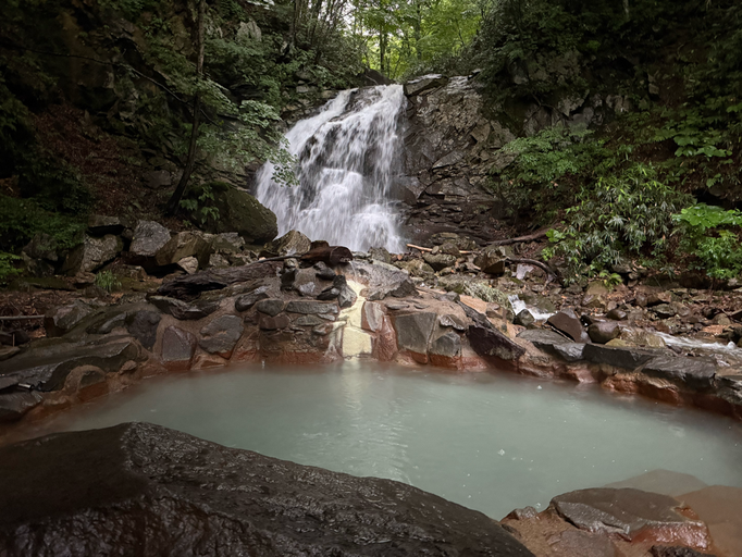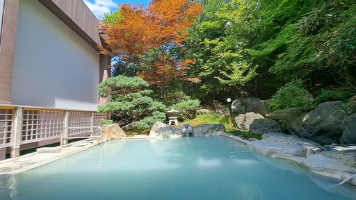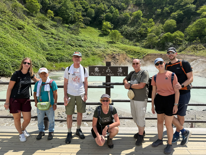 Nach dem Besuch der beeindruckenden Schwefelquellen machten sich fünf Leute unserer Reisegruppe auf, den berühmtesten Onsen von Noboribetsu zu erkunden. Hier gibt es neun verschiedene heiße Quellen, die alle für irgendwas gut sind ;). Es ist ein sehr schönes Termalbad mit mehreren Becken. Am besten haben mir die Außenbecken gefallen. Hier konnte man super nach der Wanderung entspannen. Sehr empfehlenswert!