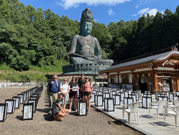 Treffen war um 8:30 vor dem Hotel zum Abmarsch zur Sendai Station. Um 9:12 ging es vom Bahnsteig 7 mit dem Expresszug nach Yamadera. Nachdem der Stadtrand von Sendai erreicht war domminierten die unzähligen bewaldeten Berge die Aussicht. Nach etwa 1 Stunde erreichten wir Yamadera. Der Ort selbst bietet außer ein paar Cafe´s und Restaurants nichts Touristisches. Die Attraktion ist der Risshakuji Shrine und der Aufstieg über die 1080 Treppenstufen. Obwohl es recht warm war haben alle Teilnehmer diesen Aufstieg locker geschafft, also der Fuji San kann ruhig kommen!