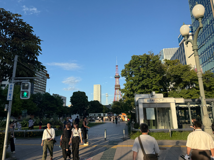 Da ich diese von früher kannte, macht ich einen Ausflug auf den Mt. Moiwa. Von dort oben hat man einen phantastischen Ausblick über Sapporo und die nähere Umgebung. Vom Hotel aus ging es in 5 Minuten zur Straßenbahnhaltestelle der Ichijo Linie. Diese Linie fährt „im Kreis“ d.h. es ist im Prinzip egal in welche Richtung man einsteigt, da man an jeder Haltestelle vorbeikommt. Kürzer ist es aber die richtige, gelbe, Linie zu nehmen und bis zur Haltestelle Mt.Moiwa Ropeway zu fahren, Bezahlung mit PASMO. Von der Haltestelle bis zur Talstation der Seilbahn läuft man etwa 600m. Normalerweise fährt ein kostenloser Zubringerbus. Da aber heute, die zweite Sektion der Seilbahn einen Schaden hatte, wurde der Bus für den Verkehr vom Ende der ersten Sektion bis zum Gipfel benötigt und stand als Zubringerbus nicht zur Verfügung, also laufen.