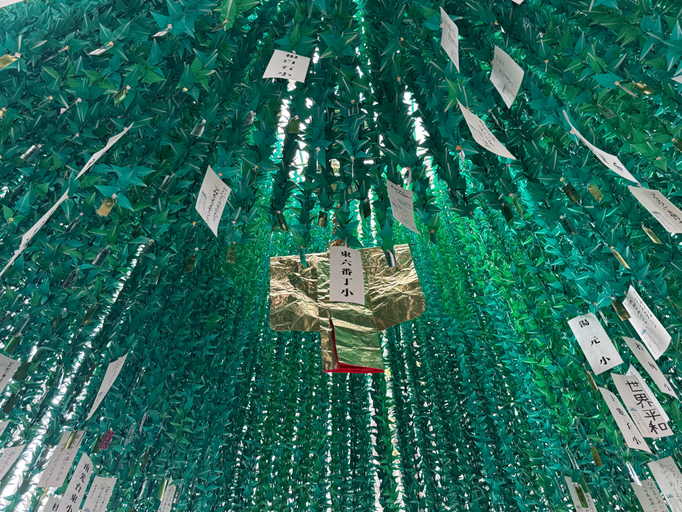 Anschließend fuhren wir mit der Bahn ein paar Stationen weiter und landeten mitten in der überdachten Einkaufsstraße Sendais, die durch ihre farbenfrohe und kunstvolle Tanabata-Dekoration besticht. Besonders bewegend: Die rund 78.000 gefalteten Papierkraniche, die zum Gedenken an das Erdbeben und den Tsunami von 2011 ausgestellt sind – ein stilles, berührendes Zeichen des Erinnerns.