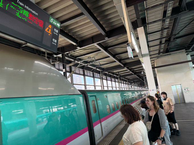 Pünktlich fuhr der Hotelbus los und brachte uns nach Morioka. Von hier fuhren wir 140 Minuten mit dem Shinkansen bis zur Endstation Shin-Hakodate-Hokuto. Dies ist der nördlichste Bahnhof, der von der Hokkaidō-Shinkansen bedient wird. Kurz vorher passierten wir noch den Seikan Tunnel, mit 53,58 km einer der längsten Unterwassertunnel der Welt. Er verbindet die Hauptinsel Honshū mit der Insel Hokkaidō.