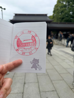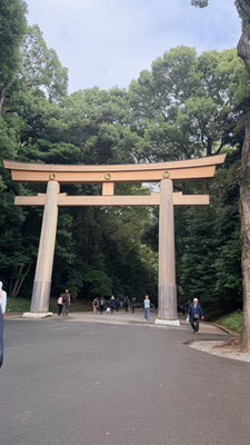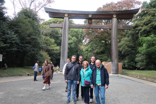 Hier folgte ein wunderschöner Spaziergang durch den Meji Jingu Garten, wo es bereits auf dem Weg zum Schrein viele geschmückte Bonsai-Bäume und Chrysanthemen aufgrund einer laufenden Ausstellung zu sehen gab. Am Schrein angekommen konnte man eine Hochzeit beobachten, aber auch die Gebäude bewundern, beten und einen Stempel sammeln oder Glücksbringer mitnehmen.