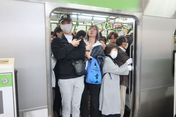 Wir sind dann mit der Bahn (gelb, JR) nach Yoyogi gefahren, dort umgestiegen und nach Harajuku.