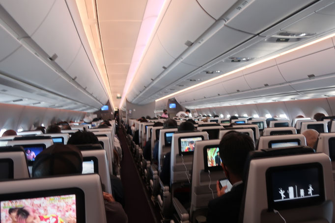 Nachdem der Zubringerflug in München gelandet ist und man die Reiseformalitäten mit dem dortigen Sicherheitspersonal hinter sich gebracht hat, mache ich mich auf den Weg zu Gate H48. Dort treffe ich zum ersten Mal die Mitreisenden dieser E2-Reise und Andreas Koyama, der uns alle in gewohnt freundlicher Weise begrüßt und die Anwesenheit auf den Teilnehmerlisten notiert. Ein paar kurze Gespräche später beginnt auch schon das Boarding. Aufgrund des gebuchten Gangplatzes im hinteren Teil des Flugzeugs bin ich in Gruppe 6 – also als letzter an der Reihe in den Flieger zu steigen. Der Sitzplatz in der Lufthansamaschine in der Economy-Class wird mein Bossgegner für die nächsten 12 Stunden werden.