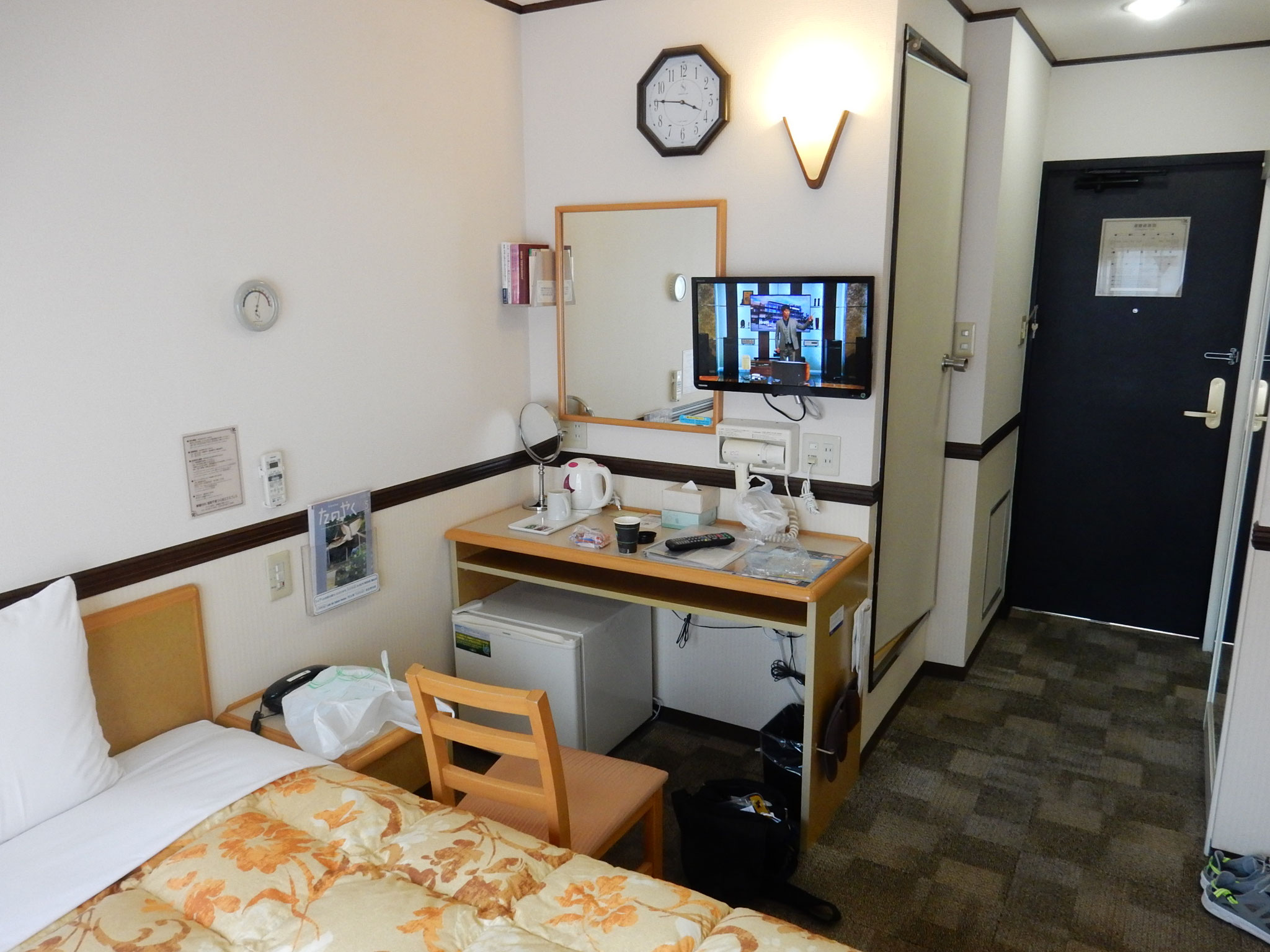 Koyama-san hat viele Jahre nach dem idealen Hotel gesucht und hat sich schließlich entschieden. Die japanische Hotelkette Toyoko Inn bietet saubere, freundliche und perfekt durchdachte Hotels mit einem landesweiten Netzwerk. Die Zimmer sind im westlichen Stil gehalten und bieten zwar nicht besonders viel Platz, haben dafür mehr Annehmlichkeiten also so manch deutsches Hotel mit doppelten Preisen. So sind alle Zimmer mit einer sauberen Duschbadewanne und einem japanischen WC mit Washlet ausgestattet. Alle Zimmer haben eine selbst regulierbare Klimaanlage, einen Kühlschrank und Wasserkocher. WLAN gibt es natürlich auch.