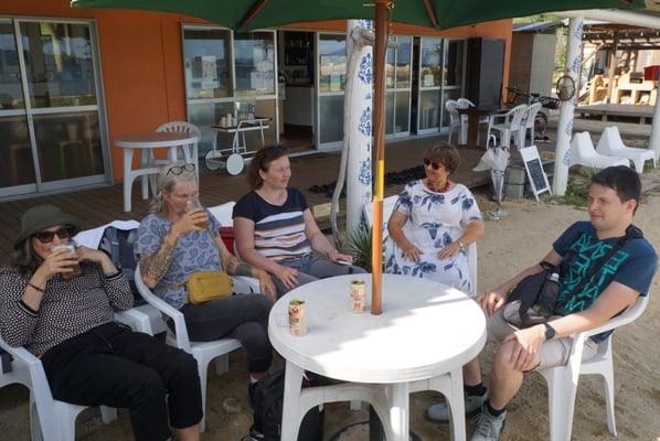 Ein Teil der Gruppe fuhr mit der 13:20 Uhr Fähre wieder zurück. Anderer Teil traf sich am Strand - einige gingen die Füße baden, andere nahmen ein Ganzkörperbad. Erste Bars waren alle geschlossen (keine Saison mehr). Wassertemperatur lt. google 26° C. Zwei Abenteurer erkundeten die nähere Umgebung und oh eine Bar, hatte geöffnet! Alle hin.