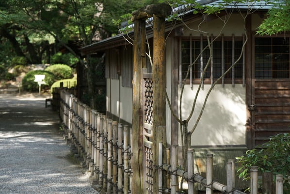Gleich daneben liegt der Kikko-Schrein auf dem ehemaligen Gelände des Wohnsitzes der Kikkawa-Familie. Vom alten Wohnsitz sind noch ein paar Gebäude erhalten und auf einer Schautafel sieht man erst, wie groß die Anlage einmal war. Ein kleiner japanischer Garten und auch ein Irisgarten schließen sich hinter dem Schrein an.