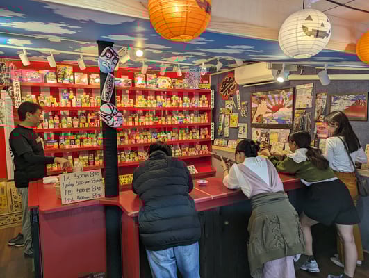 Wir waren laut Maps am Ziel, fanden aber den Eingang nicht. Eine nette junge Japanerin half uns mit Google Translate. Da wir noch früh dran waren, liefern wir noch durch die Einkaufs-/Essensstraße. Es war Sonntag und sehr voll. Viele standen vor den Imbissen an um etwas zu essen zu holen. Wir fanden in einem kleinen Laden ein T-Shirt und einen Kimono für Aurelia, aßen wieder frische Erdbeer-Schoko Mocchis und gingen dann zur Teezeremonie. Mit einem anderen Pärchen aus Dänemark führte uns die japanische Expertin im Kimono gekleidet durch die Historie und die Tradition der Teezeremonie. Sie bereitete für uns einen Matcha Tee, den wir mit der Süßigkeit genießen durften, übrigens den letzten Schluck in der Tasse schlürft man, als Zeichen, dass es geschmeckt hat. Danach durften wir unseren eigenen Matcha Tee zubereiten. Als wir auch diesen genossen hatten gab es noch ein paar Erinnerungsfotos und wir verabschiedeten uns. Ein wirkliches schönes Erlebnis.