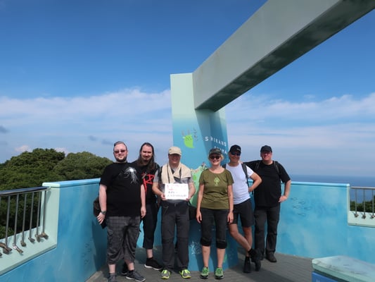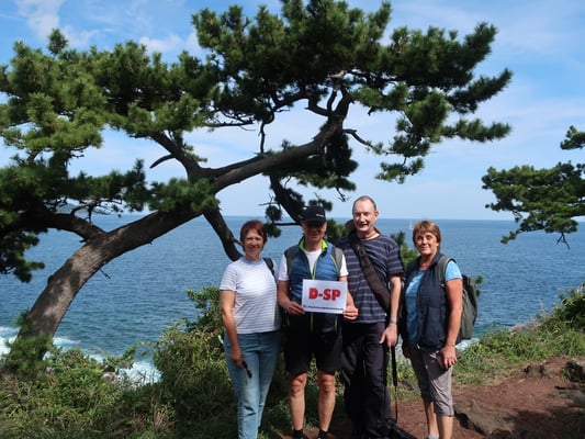 Heute ging es relativ zeitig (7.45 Uhr) los zu unserem Ausflug nach Shikanoshima. Zuerst mit der Bahn bis Saitozaki und dann mit einem kleinen Bus weiter nach Shikanoshima. Ein kleiner, eher verschlafener Ort. Aber mit dem sehr imposanten Shikaumi Schrein. Nach ausgiebiger Besichtigung erfolgte der Aufstieg zum Shiomi Park, dem höchsten Punkt der Insel. Es war ziemlich warm und der Weg war von zahlreichen Spinnenweben inclusive Spinnen gesäumt, was nicht jedem gefiel. Aber durch die wunderbare Aussicht wurden alle entschädigt.