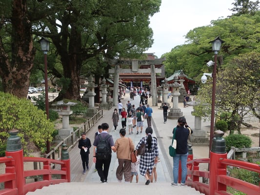 Daizaifu hat eine reiche historische Vergangenheit, die bis in die Heian-Zeit zurückreicht. Der Höhepunkt unseres Besuchs war der beeindruckende Tenmangu-Schrein, der dem Gelehrten Sugawara no Michizane gewidmet ist. Dieser friedliche Ort mit seinen Gärten und Torii-Toren bot einen Einblick in die japanische Kultur und Geschichte. Dabei fiel uns auf, dass viele Touristen und Schulklassen unterwegs waren, was der Atmosphäre eine lebendige Note verlieh.
