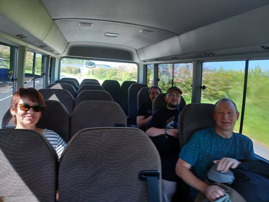 Bis zum Busbahnhof waren es nur wenige Minuten, wo Koyama-san die Fahrkarten verteilte. Anders als in Deutschland müssen die Koffer der Reisenden selbst in den Bus verladen werden - dankenswerterweise übernahmen vier kräftige Männer diese Aufgabe für alle ;).
