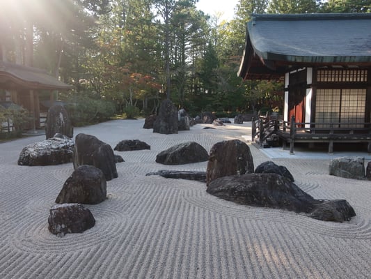 Nach einer kurzen Verschnaufpause geht's weiter zum Kongobuji-Tempel, den einige auf Socken in Windeseile besichtigen, um anschließend noch den Danjo Garan Tempelkomplex zu erobern. Die Rückfahrt