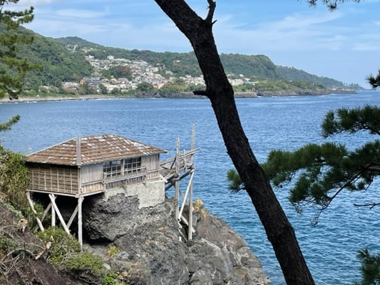Heute geht es mit kleiner Gruppe auf zur freiwilligen Wanderung. Zunächst müssen wir mit dem Zug von Atami nach Futo. Von dort geht es dann zu Fuß an der Küste entlang, vorbei an zwei Tauchschulen und dem kleinen Fischerhafen, zum Jogasaki Nationalpark auf den Coast Geo-Trail.