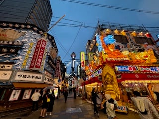 Heute ging es wieder mit einem gemeinsamen Stadtbummel los. Erste Station war die Burg Osaka, wo wir bei zum Glück aufklarendem Wetter tolle Fotos machen konnten. Sehr beeindruckendes Gebäude, heute zwar nicht mehr aus Holz sondern Beton, aber optisch sehr authentisch! Von dort aus fuhren wir weiter nach Dotonbori. Wie üblich war es auf der Brücke über dem Kanal und den Wegen neben dem Wasser wieder sehr überfüllt, sogar Spider-Man war da!🙂 Ist ein Erlebnis, aber abends beeindruckender mit den Lichtern und Werbetafeln. Nach einer kurzen Mittagspause, in der wir in der Food Mall ein paar der örtlichen Spezialitäten (Takoyaki und Kushi Katsu) genossen haben, fuhren wir weiter zur Aussichtsetage des höchsten Hauses in Japan: Abeno Harukas. Zur Aussicht gab es dort noch einen Snack, der etwas größer ausfiel als erwartet (Hot Dog: 300mm auf 300 m Höhe!). Nachdem sich die Gruppe dort getrennt hat, sind wir noch auf eigene Faust losgezogen. Erst nach Shinsekai und anschließend nach Denden Town, das „Akihabara von Osaka“. Nach einer erfolgreichen Shoppingtour kamen wir abends müde und zufrieden wieder im Hotel an.