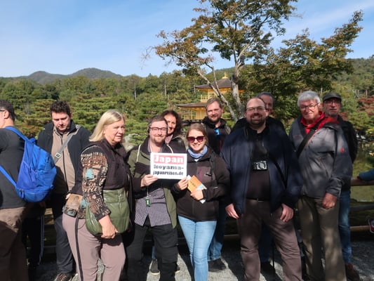 Gegen 10 Uhr waren wir am ersten Ziel, dem Goldenen Pavillon. Hier schossen wir das heutige Gruppenfoto - gegen die mächtige Konkurrenz der zahlreichen Selfie-Jäger, die für ein schönes Foto