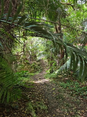 Ein kleiner Teil unserer Gruppe folgte dem heute vorgesehenen Tagesprogramm. Mit dem Monorail ging es bis nach Gibo. Eine kurze Wanderung führte uns in den Sueyoshi Park. Der Park besticht mit seinem an einen Urwald erinnernden Flair. Fast mystisch muten die Wege an, die hinauf zu einem Schrein der alten Okinawa Religion führen.
