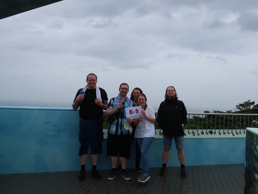 Oben angekommen, würdigten wir unseren Aufstieg mit einem Gruppenfoto und einer kleinen Pause.