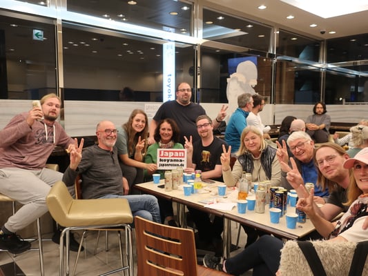 Nach einem erholsamen Bad im Onsen, haben wir den Tag beim gemeinsamen Abendessen am Buffet und Sake ausklingen lassen.