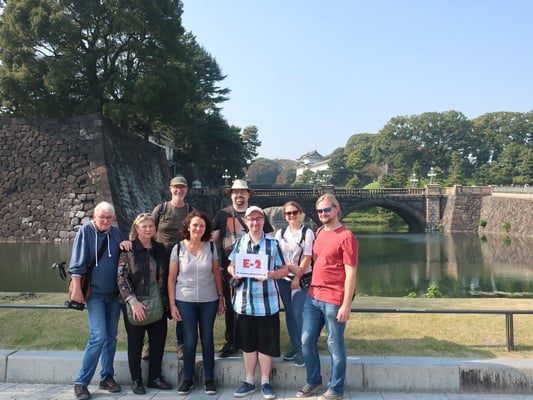 Nach diesem Gewusel ging es etwas entspannter Richtung Kaiserpalast. Wir hatten vor, nicht nur den ehemaligen Kaiser unsere Aufwartung zu machen, sondern auch den jetzigen. Leider standen wir nicht auf der Gästeliste und so haben wir das Gruppenfoto vor der Haustür gemacht.