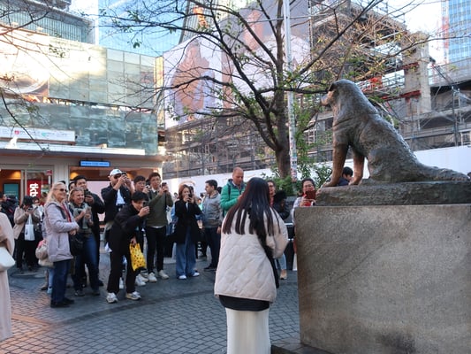 Glücklicherweise ging es nur eine Station weiter nach Shibuya, wo uns gleich nach dem Verlassen des Bahnhofs die berühmte Statue des Hundes Hachikō begrüßte.