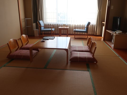 Die Zimmer, allesamt mit Blick aufs Meer, sind im Stil eines Ryokans eingerichtet mit Tatami-Matten und Yukatas, welche förmlich zu einem Besuch im Onsen einluden.