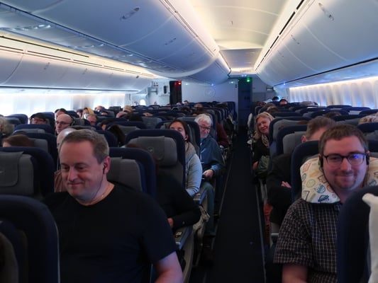 Ich war bereits vier Mal mit Koyama San und seinem Team auf Reisen, doch dieses Mal war ich auf das Rail&Fly angewiesen. Meine Freunde und Kollegen warnten mich vor. Ich sollte keine Erwartungen in die DB haben. Nach reiflicher Überlegung habe ich alles auf eine Karte gesetzt und gewonnen. Ich kam, mit nur fünf Minuten Verspätung, nach einer mehr als fünfstündigen Fahrt in Frankfurt an. Schnell noch den Koffer abgegeben, die Pass und Handgepäckkontrolle hinter mich gebracht. So war ich 90 Minuten vor Abflug am Gate.