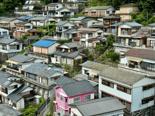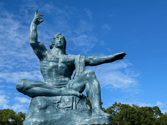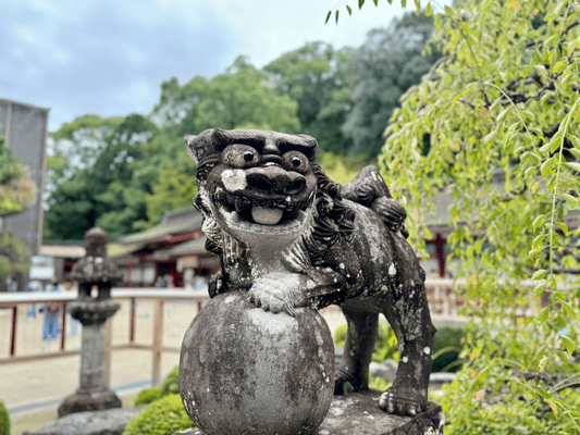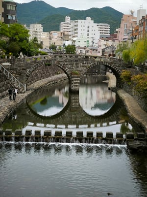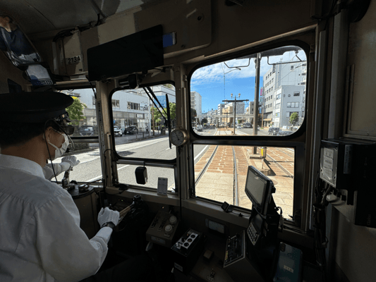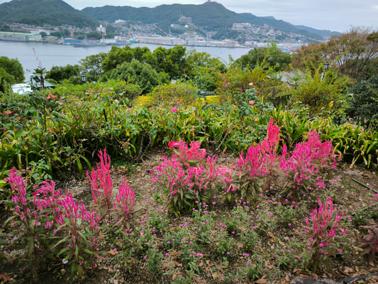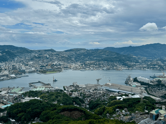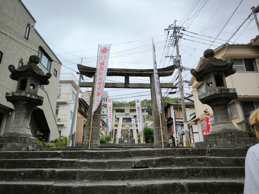 Gemütlich starten wir unseren Tag in Nagasaki mit dem Weg zur Straßenbahn. Die Linie 5 bringt uns zum Suwa Jinya Schrein. Dort erklimmen wir über 100 Stufen, die durch graue Tori's führen.