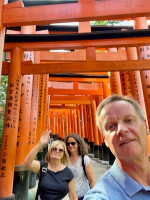 Mit der U-Bahn geht’s zum Fushimi Inari Tempel. Trotz sportlich geübtem Alpenschritt schaffen auch die beiden Karins und Fred nicht, in 60 Minuten den gesamten Rundweg durch viele Torii.
