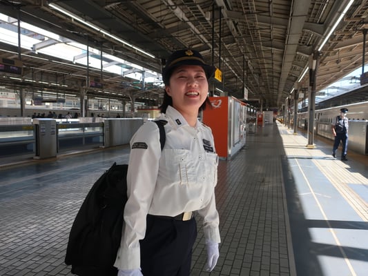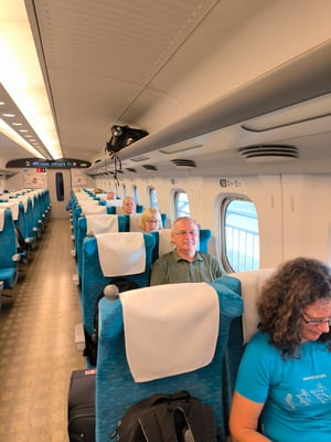 Wir fahren mit dem Shinkansen von Shin- Osaka nach Tokio.