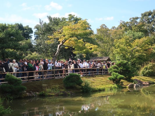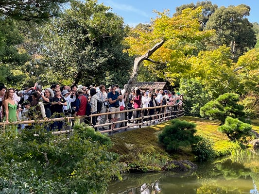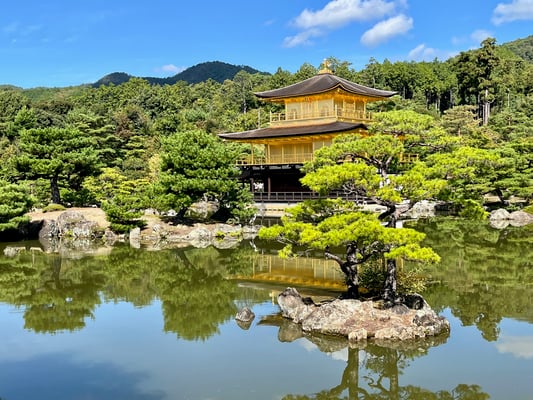 Goldenen Pavillon - Rokuonji - auf, gemeinsam mit gefühlt 1000ten Touristen aus der ganzen Welt. Aber der Anblick des goldenen Zentempel entschädigt für diese Massen, die diszipliniert durch die Wege mäandern. Manche von uns erstehen Sake mit Goldplättchen drin, Jonas toppt das mit einem gold bestreusselten Macha Eis.