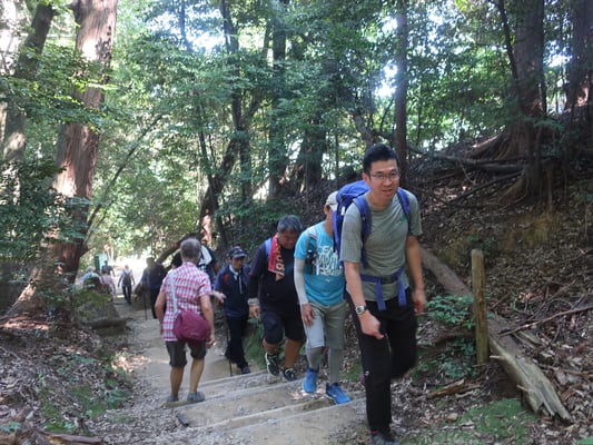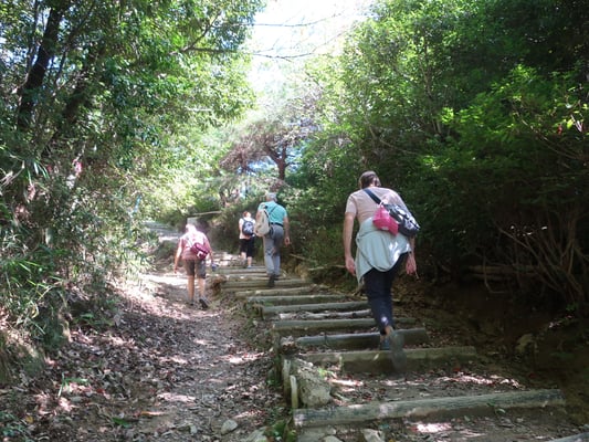 18. Tag, Herbstspaziergang ist angesagt. Ein Häuflein von 5 Naturliebhabern traf sich zu einer Wanderung auf den Tennozan bei Oyamazaki. Es begann nach den Schienen gleich mit dem Aufstieg. Uns voraus zwei ältere Japanerinnen in voller Wandermontur mit Wanderstöcken und Hütchen . Nachher haben wir gewusst, wofür die Stöcke gut waren.