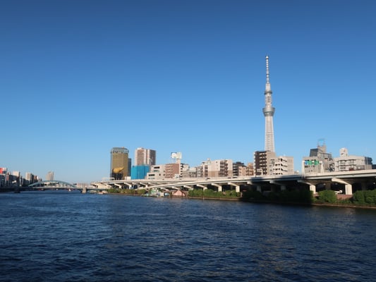 Nach dem Einchecken im Hotel laufen wir am Sumida River entlang zum Sky tree, für den es leider keine Karten mehr gibt.