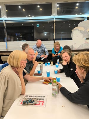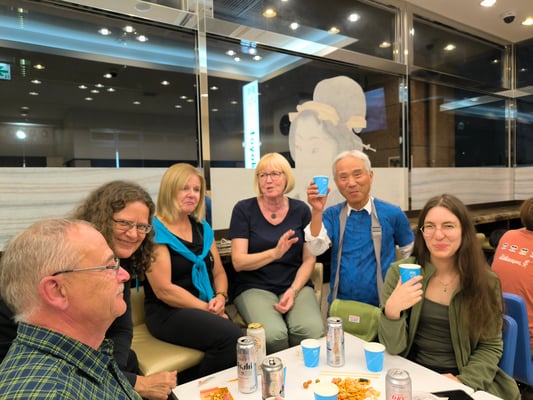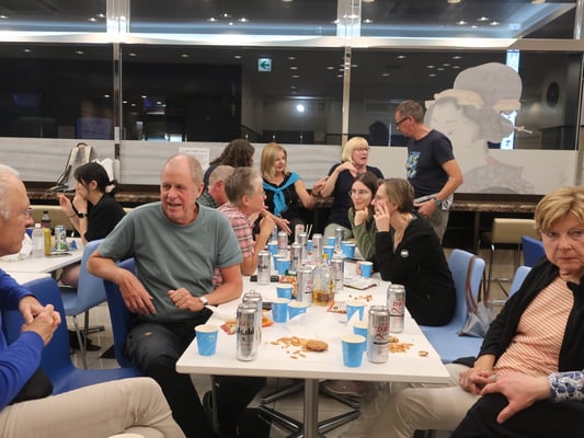 Und um 20.00 Uhr trifft sich die gesamte Gruppe mit Andreas und Koyama San zur " Dosenparty" im Foyer. Vielen Dank für das Dosebier und den Whisky.