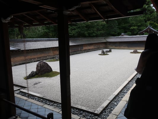 Weiter geht’s 20 Minuten zu Fuß zum Ryoanji-Tempel. Niemanden gelingt es im „Rock Garten“ alle 15 Felsen auf einmal zu erblicken - was übrigens seit Menschengedenken niemandem gelungen ist.