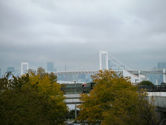 Unser erster ganzer Tag in Tokio beschert uns leider eine schlechte Wettervorhersage. Andreas hat das Programm getauscht und wir fahren nach Odaiba. Mit der fahrerlosen Monorail geht es über die beeindruckende rainbowbridge auf die künstliche Insel in der Tokiobucht. Im Nieselregen kommt leider kein Strandfeeling auf und so vertreiben wir uns die Zeit in verschiedenen Einkaufszentren.