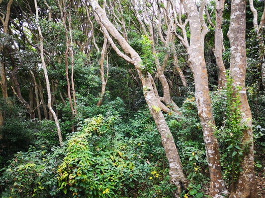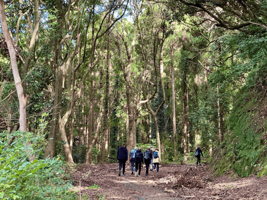 Dieser kam dann auch pünktlich und wir fuhren zur Endstation Keya Kobaiten. Nach kurzem Weg durchs Dorf erreichten wir den Pfad, der uns zuerst zu einem kleinen Tori mit Blick aufs Meer und dann